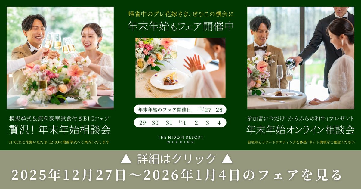 ニドムリゾートウェディングでは、年末年始もブライダルフェア・オンライン相談会を開催いたします。