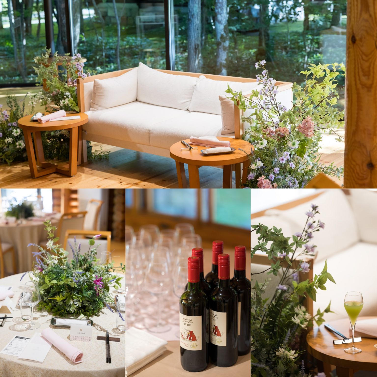 ゲストの皆さまも「ホテルニドム」のコテージに滞在し、森とグリーンを舞台にしたゴルフウェディングが行われました。