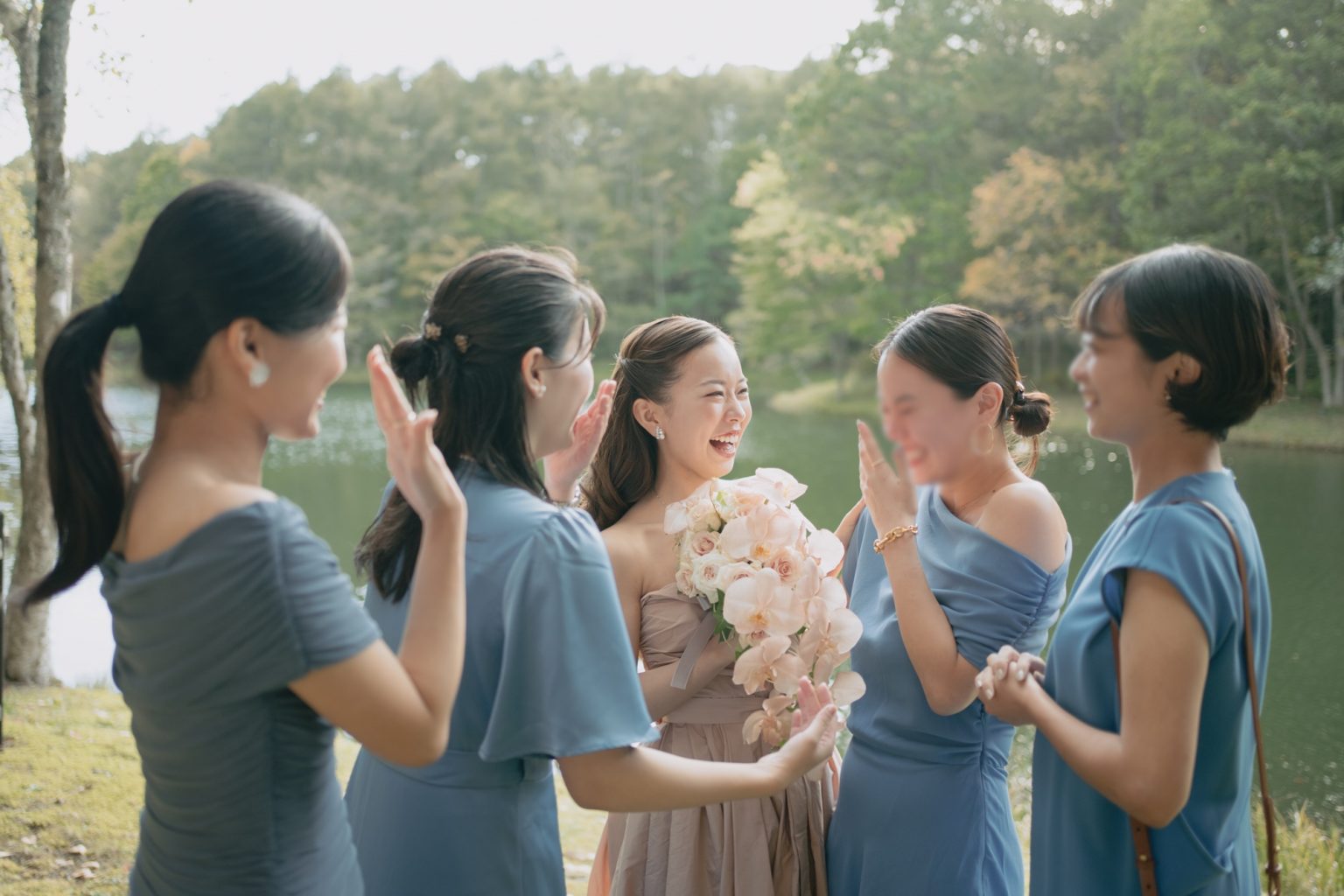 新婦様のご友人は、ブライズメイドとしてお揃いの装いでご参加。