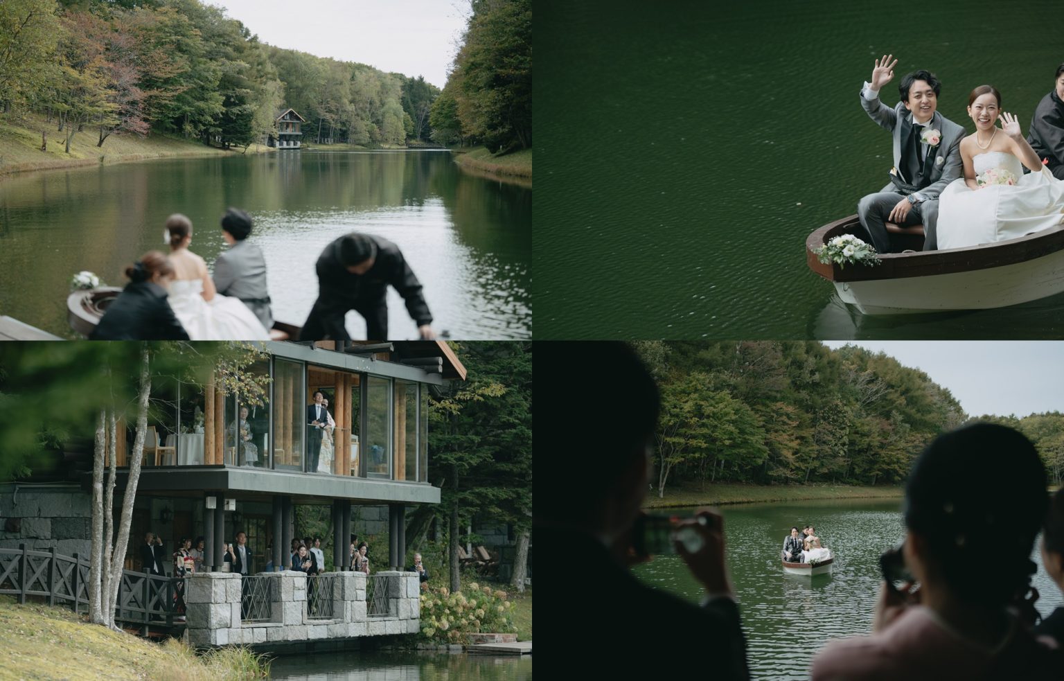 披露宴会場は、美しい湖と森の景色を望む「水のテラス」。湖からのボート入場という特別な演出ができます。