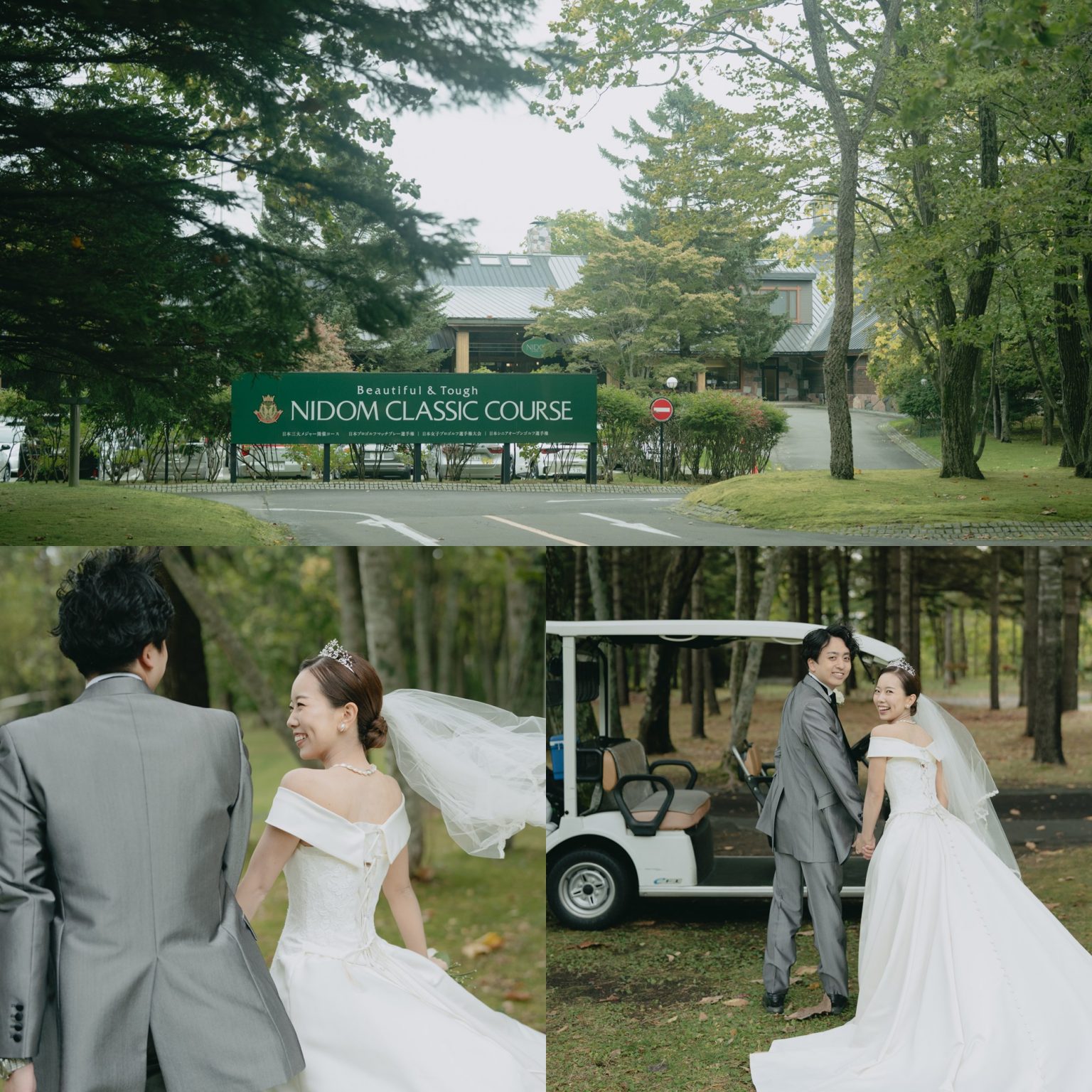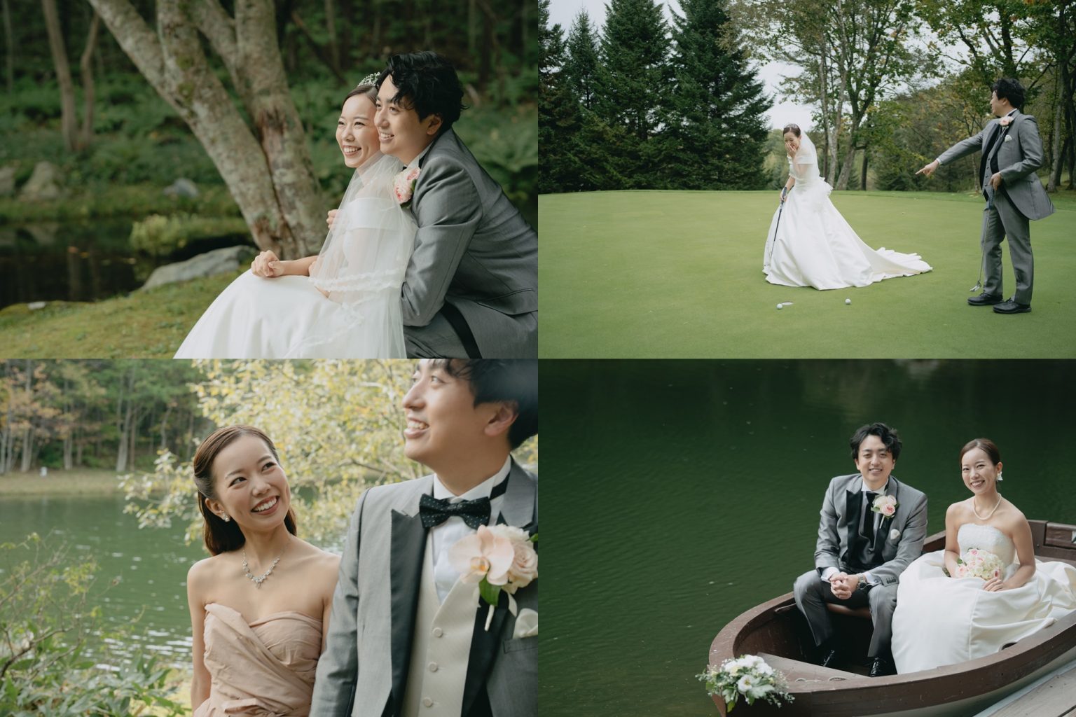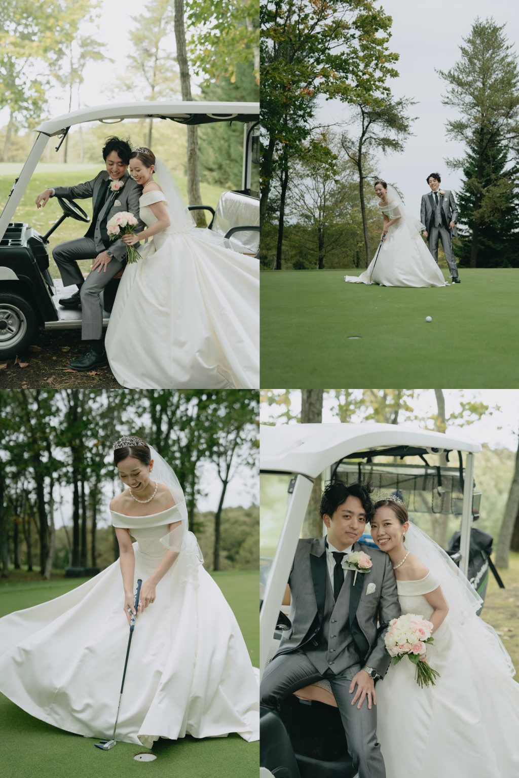 ドレス姿でのゴルフショットや、おふたりらしいリラックスした自然な表情を撮影したフォトセッション。
