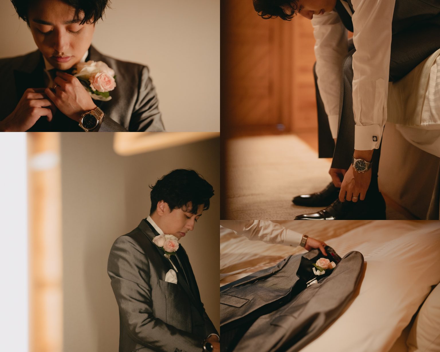 やわらかな自然光とあたたかな明かりの中で、静かにお仕度の時間が進んでいきます。